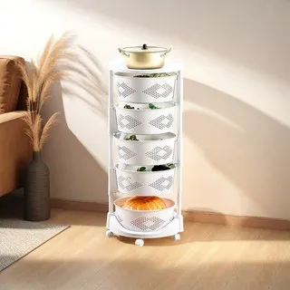 YAPOGI 이동식 접이식 트롤리 회전형 수납장, 3층, 화이트